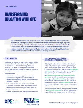 Read how GPE works to mobilize partnerships and funding in nearly 90 partner countries to transform education systems so that no child is left behind.