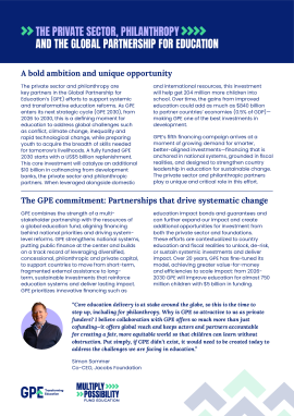 The private sector and philanthropy are key partners in GPE’s efforts to support systemic and transformative education reforms.