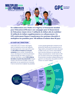 Le Partenariat mondial pour l'éducation (GPE) a lancé le volet britannique de sa campagne de financement « Multiplier les possibles. » Avec plus de 320 millions de dollars déjà promis, cette campagne mondiale vise à mobiliser 5 milliards de dollars et à débloquer 10 milliards supplémentaires pour transformer l’éducation de près de 750 millions d'enfants dans plus de 90 pays partenaires.