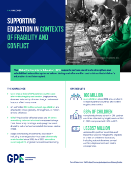 Through strategic partnerships with global and national stakeholders working in humanitarian support and development, GPE supports effective education delivery during conflicts and crises by financing rapid responses, supporting multiyear planning so that national education systems become more resilient to future crises and inclusive of refugees.