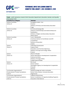 Composition of the Performance, Impact and Learning Committee reporting to the GPE Board of Directors.