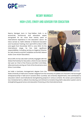 Biography of Nesmy Manigat, former Haiti education minister, named GPE High-Level Envoy and Advisor for Education.